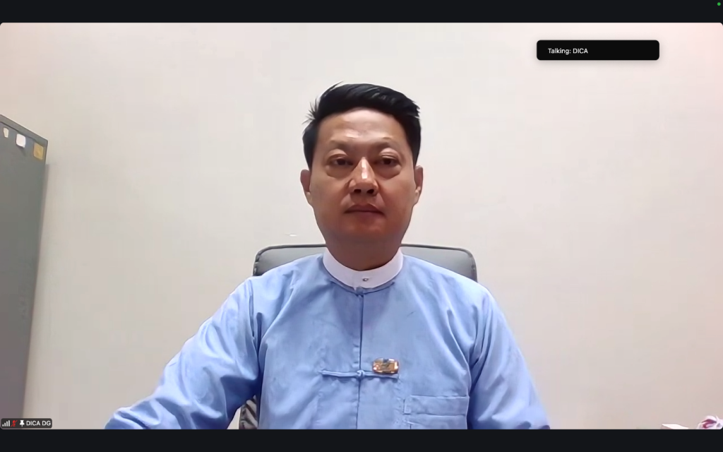 The opening ceremony of “Capacity Building for Scheduling Investment Reservation List under International Investment Agreements (IIAs) for Business Entry”, organized by the Directorate of Investment and Company Administration (DICA) under the Ministry of Investment and Foreign Economic Relations (MIFER) and funded by the ASEAN-Japan Centre (AJC), was virtually held as the AJC’s National Activities Project at the DICA Headquarter in Yangon on 26 February 2026.
