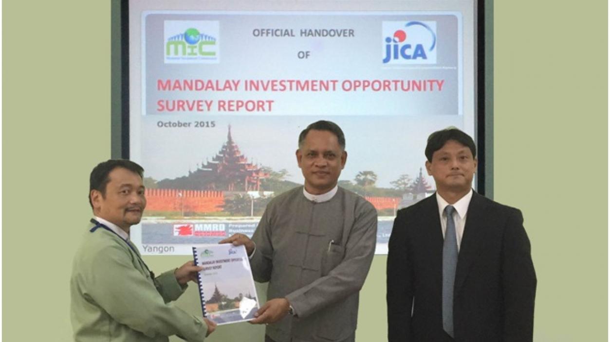 The Official Handover of Mandalay Investment Opportunities Survey Report, jointly organized by Directorate of Investment and Company Administration under Ministry of Planning and Finance and Japan International Cooperation Agency (JICA), was held at the office of the Directorate of Investment and Company Administration in Yangon on 21st April, 2016.