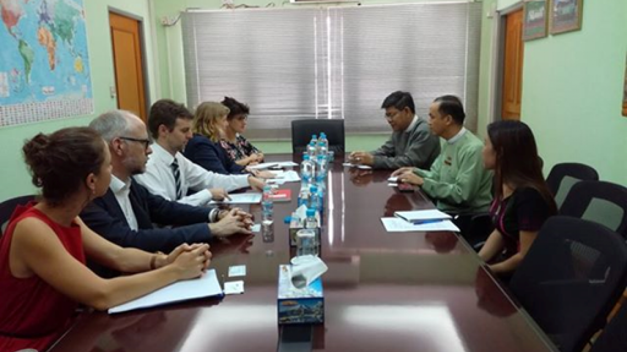 U Thant Sin Lwin, Acting Director General of the Directorate of Investment and Company Administration (DICA) received Ms. Marina Schmeiber,Senior Policy Officer from Federal Ministry for Economic Cooperation and Development and team on 23rd May, 2019. During the meeting, they discussed matters relating to investment promotion and cooperation.