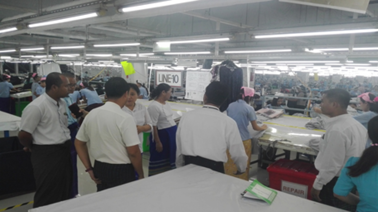 Officials from the Directorate of Investment and Company Administration, the Department of Labour, the Department of Environmental Conservation and the Directorate of Industrial Supervision and Inspection conducted a field inspection to the manufacturing of garment on CMP basis under the Yangon Region Investment Committee (YRIC) endorsement by “New Green Land Garment Co., Ltd.”at Pyinmabin Industrial Complex in Mingaladon Township on 22nd May 2019. During the inspection, the team coordinated the commercial operation activities and necessities of the companies.