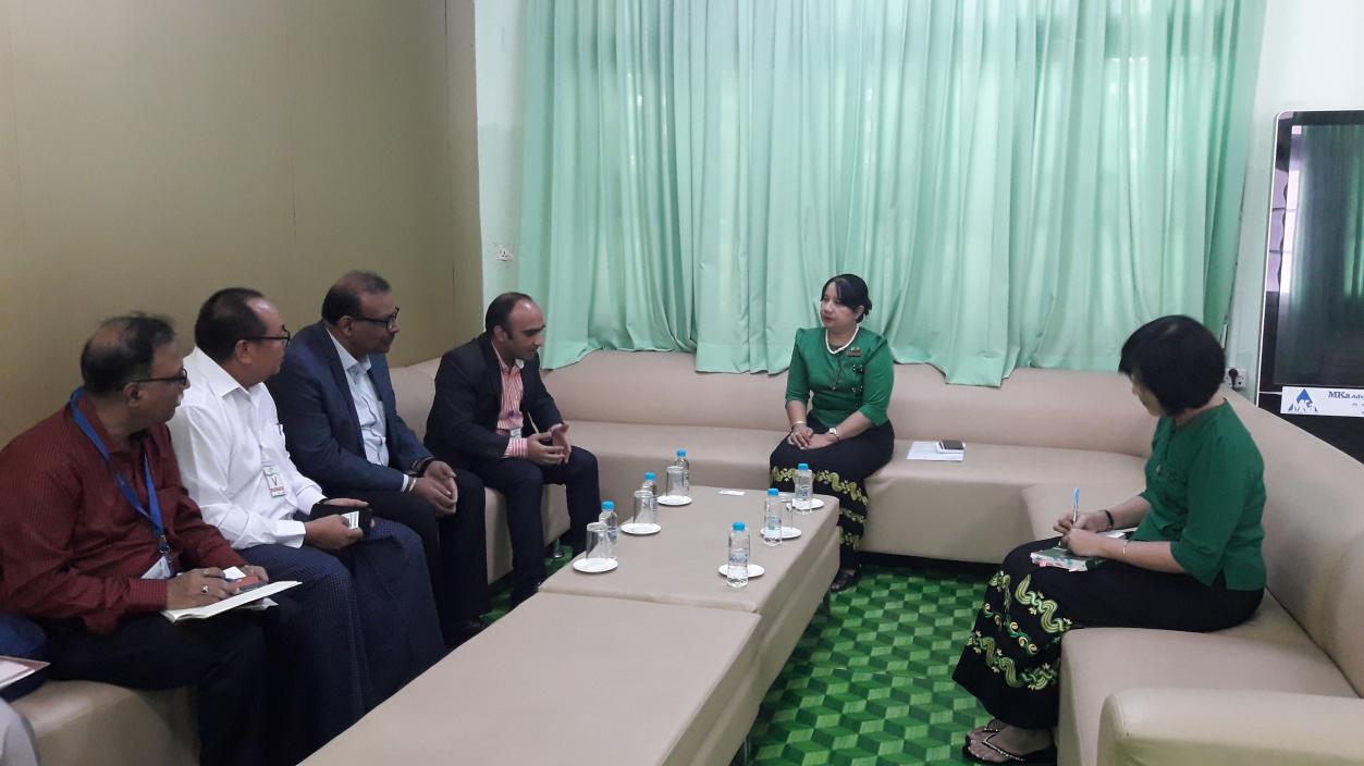 Dr. Marlar Myo Nyunt, Deputy Director General of the Directorate of Investment and Company Administration received Mr. Vijay Dhayal, Managing Director of New Crossroads Asia Myanmar Limitedon 21st February, 2020 in Yangon and cordially discussed the matters relating to the investment.