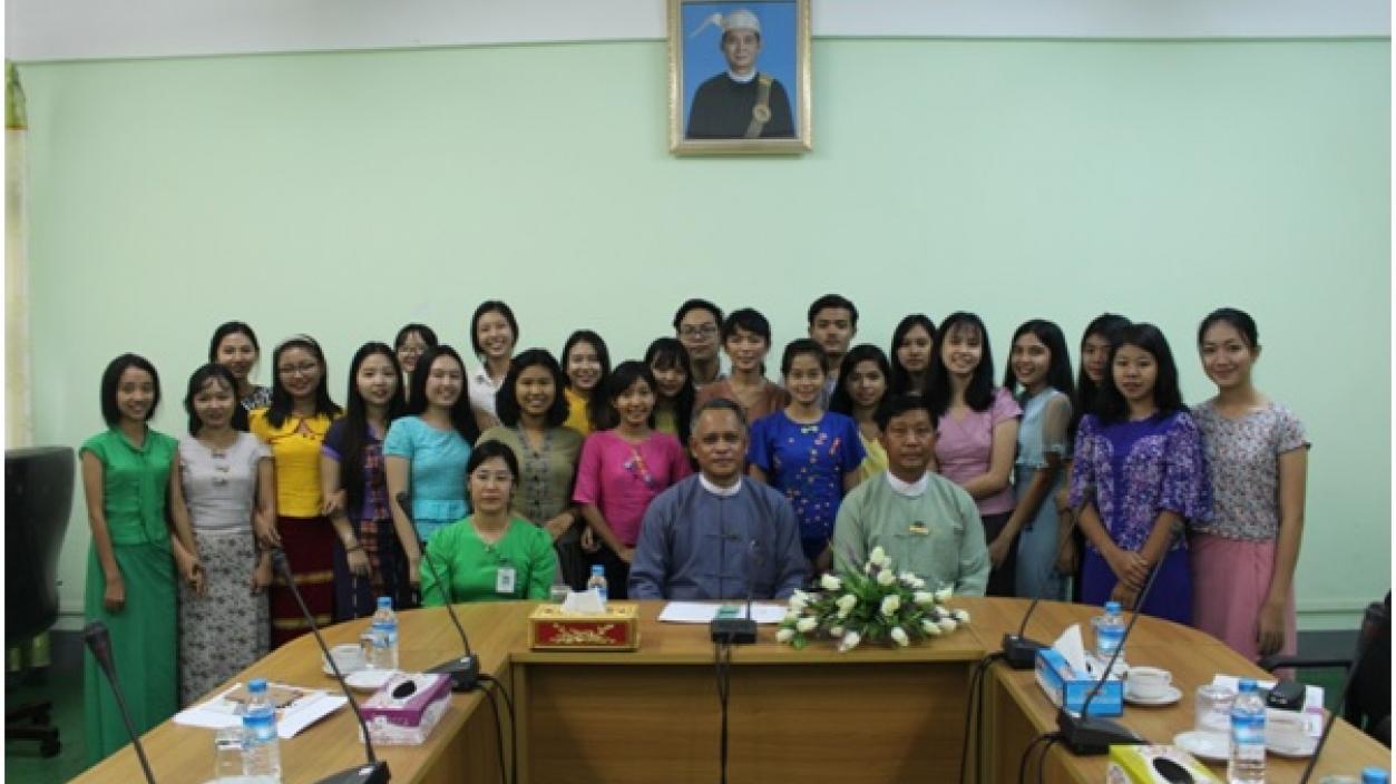One month internship training for the students who are studying Development Studies at Yangon University of Economics and French at the Yangon University of Foreign Languages is holding from 2nd to 31st May 2018 at Directorate of Investment and Company Administration (DICA) in order to understand the work culture, get knowledge and practical work experiences and improve socialization skills. U Aung Naing Oo, Director General, attended the meeting and delivered a speech to the students for becoming the future leaders by studying continuously not only for them but also for the country. And then, the Director General presented the certificate of appreciation to two students who translated the Myanmar Investment Guide 2018 to French. The meeting was attended by 33 people, including Director General, Directors from DICA head office and internship students.