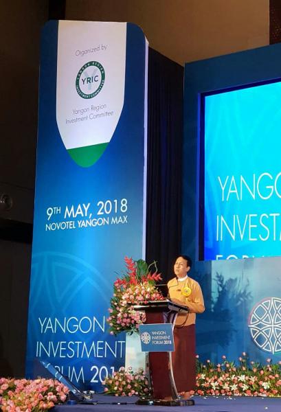 With the guidance of Yangon Region Government and Yangon Region Investment Committee, Yangon Investment Forum 2018 was held at Novotel Yangon Max Hotel on 9th May 2018 in collaboration with Directorate of Investment and Company Administration. The forum was mainly sponsored by Myanmar Investor Development Association (MIDA) and co-sponsored by the Republic of the Union of Myanmar Federation of Chambers of Commerce and Industry (UMFCCI), German Cooperation through GIZ, PwC Myanmar.