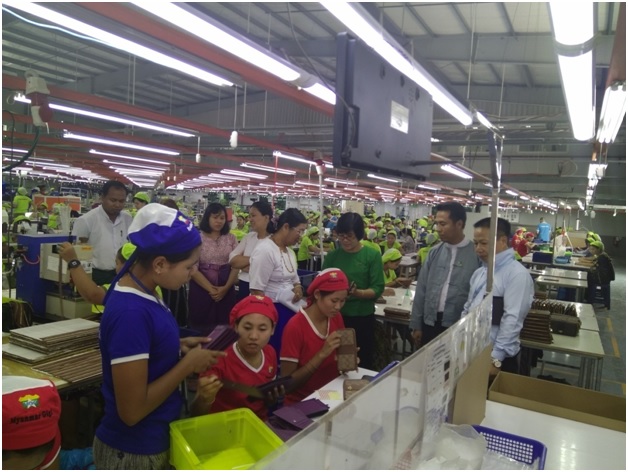 A ground inspection team organized by Myanmar Investment Commission, comprised of officials from Directorate of Investment and Company Administration, the Department of Environmental Conservation , Department of Industrial Supervision and Inspection, and Directorate of Labour made a field visit to Myanmar GIGI Leather Goods Manufactory Co., Ltd. of Plot No. 96 , Myay Taing Block No.51, Thardu Kan Industrial Zone, Shwe Pyi Thar Township, Yangon Region on 3th May , 2018. The team discussed the company’s quarterly reports, installation of machine, employment, capacity input, and the environmental management plan conducted by the Company. The team also discussed the responsibilities of the company and the coordination of those with the respective departments.