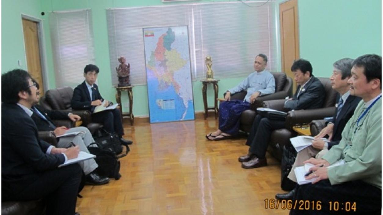 The Members of Investment Promotion Working Group of Myanmar-Japan Joint Initiative paid a call at the office of the Directorate of Investment and Company Administration (No.1, Thitsar Road, Yankin Township) in Yangon at 10:00 am on 16th June, 2016. At the meeting, they cordially discussed the matters for conducting the 1st meeting on Investment Promotion Working Group.