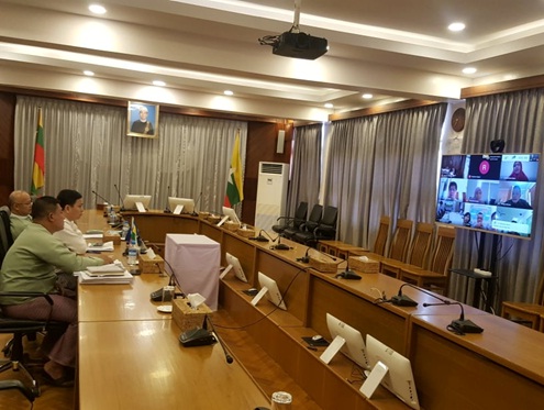 The 34th meeting of the Working Group on International Investment Statistics (34th WGIIS) was held a Video Conference today at 8:15 am on July 7th  2020. U Min Zaw Oo, Deputy Director General, U Kyaw Win Tun, Director of Planning and Statistics Division and officials concerned were present from Yangon Head office of the Directorate of Investment and Company Administration. The representatives of the ASEAN Member States and officials from ASEAN Secretariat were also attended the meeting from their respective countries. The matters related to the Foreign Direct Investment Statistics and current development FDIS in ASEAN member states were discussed in the meeting.