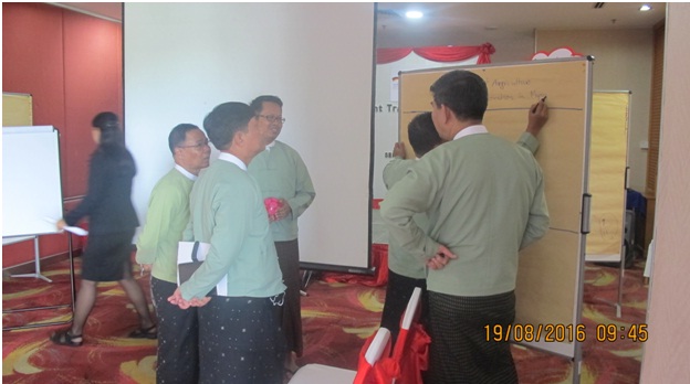 As the second day of the training on Leadership and Management, with the assistance of the Germany International Cooperation Agency (GIZ), was conducted at Sedona Hotel, Yangon on 19th August 2016. The objective of the training is to enhance leadership and management skills for selected management staff in order to manage people, tasks and challenging situations successfully and efficiently. The training was attended by Director General, Deputy Director Generals, Directors and Deputy Directors from the Directorate of Investment and Company Administration respectively.