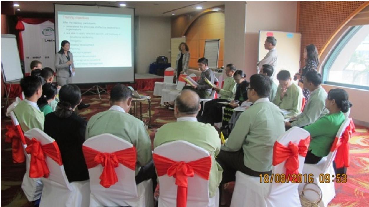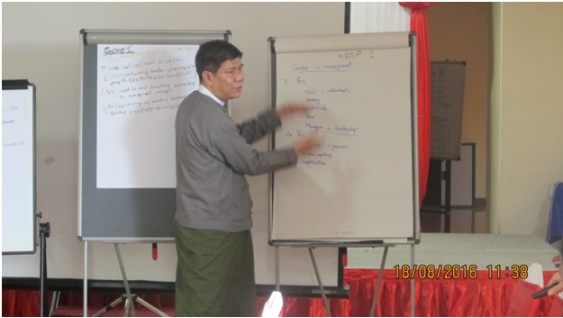 With the assistance of the Germany International Cooperation Agency (GIZ), the training on Leadership and Management was conducted at Sedona Hotel, Yangon on 18th August 2016. The objective of the training was to enhance leadership and management skills for selected management staff in order to manage people, tasks and challenging situations successfully and efficiently. The training was attended by Director General, Deputy Director Generals, Directors and Deputy Directors from the Directorate of Investment and Company Administration respectively.