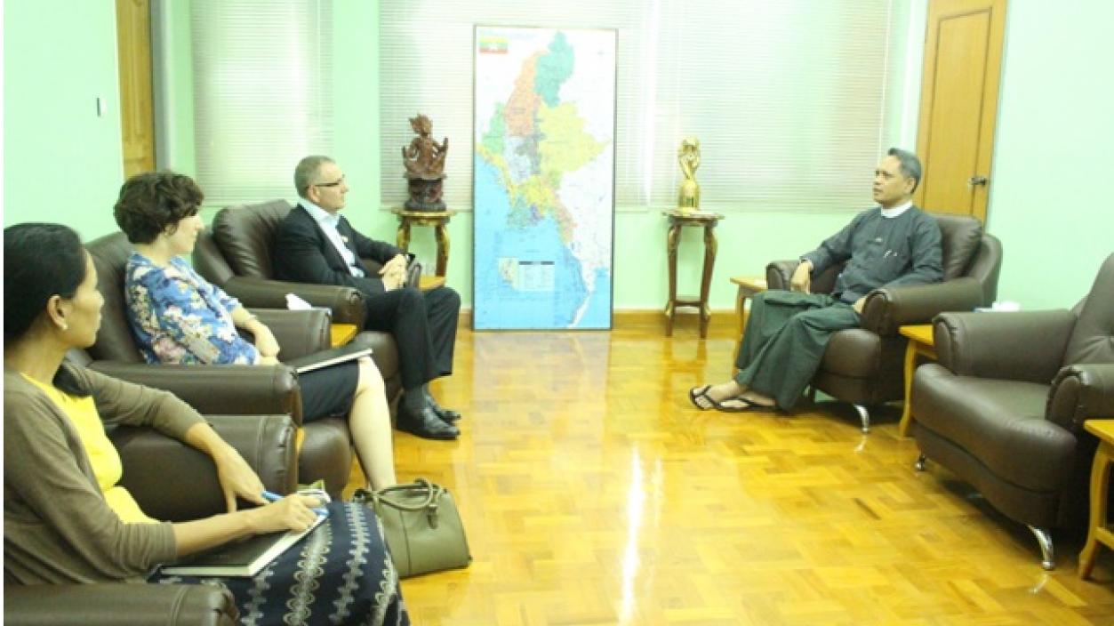 The delegation led by the Chairman of Allen and Overy, International Legal Firm, Mr. Simon Makinson paid a call at the office of the Directorate of Investment and Company Administration in Yangon in the afternoon of 15th August, 2016. At the meeting, they cordially discussed about Investment and Legal Issues.