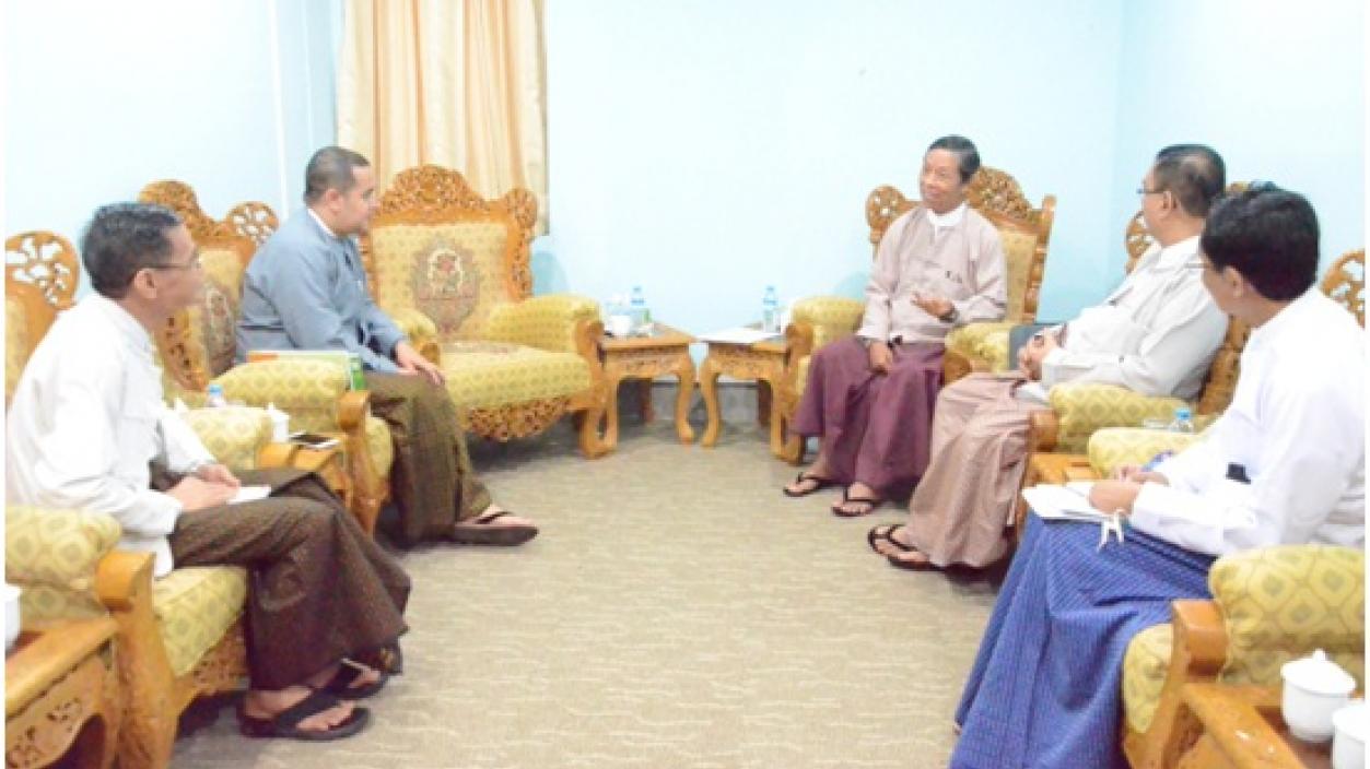 Chairman U Chit Khing , Managing Director U Ye Min Aung, and Consultant U Shu Kyein from Myanmar Agribusiness Public Corporation paid a courtesy call on H.E U Kyaw Win, Chairman of Myanmar Investment Commission and Union Minister for Planning and Finance , at the office of Directorate of Investment and Company Administration in Yangon in the afternoon on 8th August, 2016 and cordially discussed matters relating to the investment and Myanmar economic development.