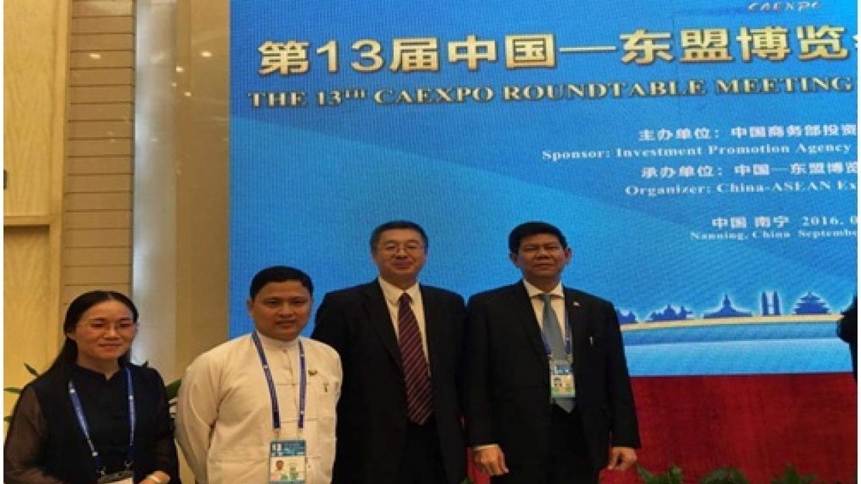 Deputy Director General U Thant Sin Lwin and Director U Min Zaw Oo from Directorate of Investment and Company Administration attended “The 13th CAEXPO-Roundtable Meeting on Investment Cooperation” in the morning of 12th September 2016 and Deputy Director General U Thant Sin Lwin delivered a speech on the current investment situation and cooperation activities of Myanmar and future cooperation. The roundtable meeting was hosted by Ministry of Commerce of the People’s Republic of China and attended by the senior level representatives of the ASEAN’s Investment Promotion Organization and the Golden Land-Myanmar National Promotion Conference in the afternoon of 12th September 2016, held at the Nanning International Convention and Exhibition Center, Nanning, China. Director U Min Zaw Oo made a presentation on the topic of “Updating Investment Opportunities in Myanmar” and answered the questionnaires at the Q&A section.