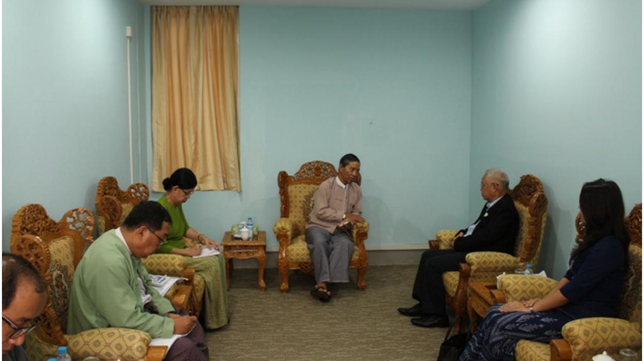 The delegation led by Mr. U Myint Htay, Chairman, UMH Co., Ltd. paid a courtesy call on Chairman for Myanmar Investment Commission and Union Minister for Ministry of Planning and Finance, H.E U Kyaw Win at the office of Directorate of Investment and Company Administration in Yangon in the morning on 12th September, 2016 and cordially discussed matters relating to the investment.