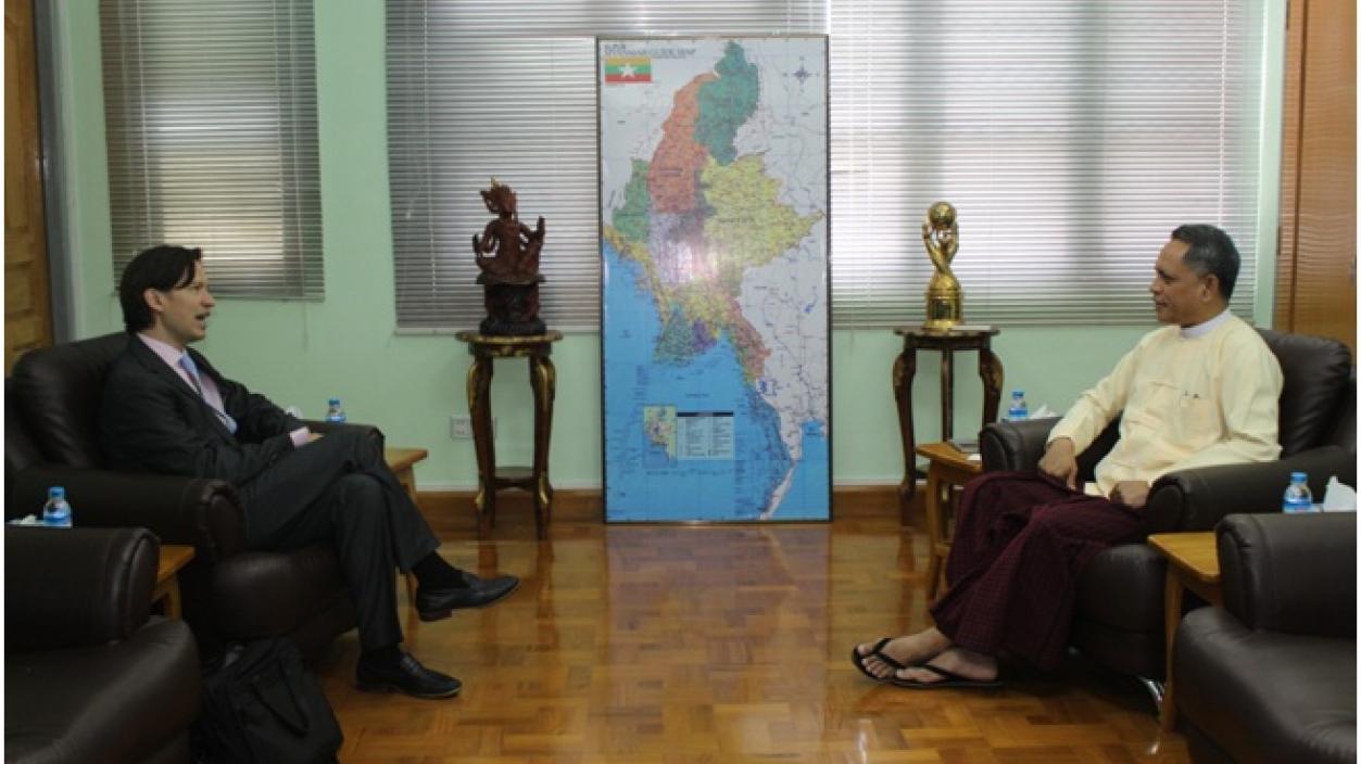Mr. Don Stokes, Partner of Freshfields Bruckhaus Deringer, met with U Aung Naing Oo, Director General of the Directorate of Investment and Company Administration in Yangon in the afternoon of 23rd July, 2017, and cordially discussed matters relating to the investment.