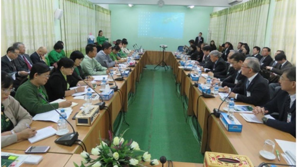 The delegation led by Mr. Yutaka Aso, Chairman, Kyushu Economy International met with U Thant Sin Lwin, Deputy Director General of the Directorate of Investment and Company Administration in Yangon on 7th February, 2018, and cordially discussed matters relating to the investment.
