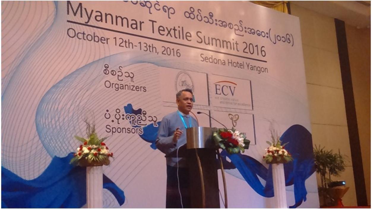 U Aung Naing Oo, Secretary of Myanmar Investment Commission and Director General of Directorate of Investment and Company Administration attended “Myanmar Textile Summit 2016” which was jointly organized by Myanmar Garment Manufacturers Association and ECV International Co., Ltd at Sedona Hotel, Yangon, 12th October 2016. At the summit, Director General gave the presentation for the topic of “New Myanmar Investment Law & Garment Industry in Myanmar”. After the presentation, local and international investors from Textile Industry cordially asked the questions for investment matters in Myanmar and Director General replied in details.