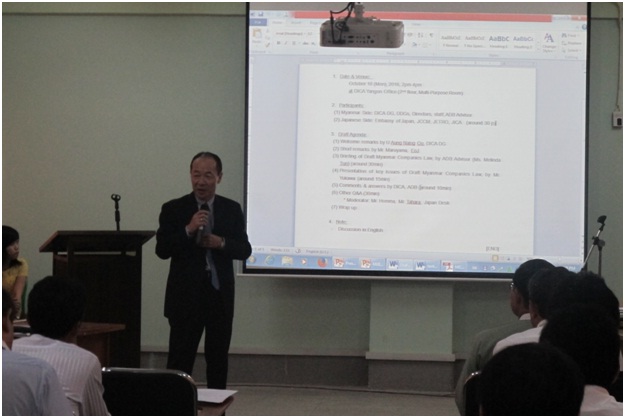 The seminar on draft Myanmar Companies law of Investment Promotion Working Group under Myanmar-Japan Joint Initiative Phase II was conducted at Directorate of Investment and Company Administration in Yangon at 2:00 pm on 10th October, 2016.