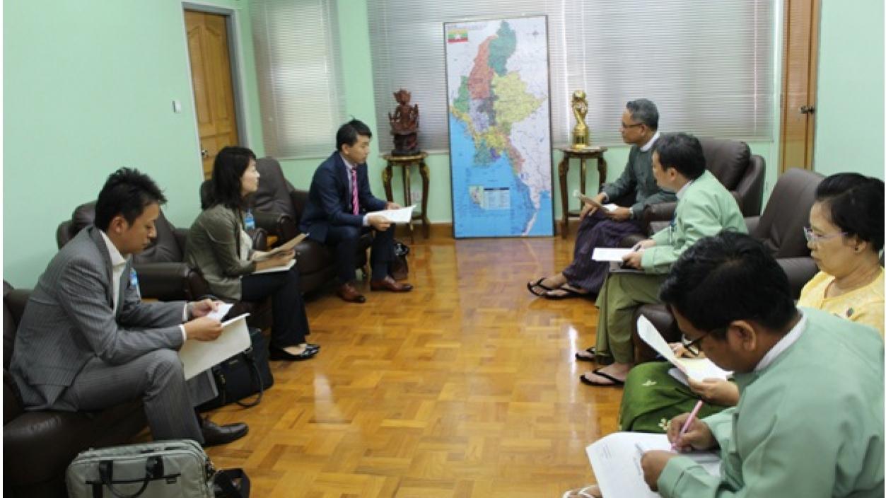 Mr. TANAKA Shinichi, Director of Industrial Development and Public Policy Department, JICA headquarters, paid a call with Director General of the Directorate of Investment and Company Administration (DICA) in the DICA office in Yangon at morning on 4th October, 2016 and discussed about matters related to investment promotion.