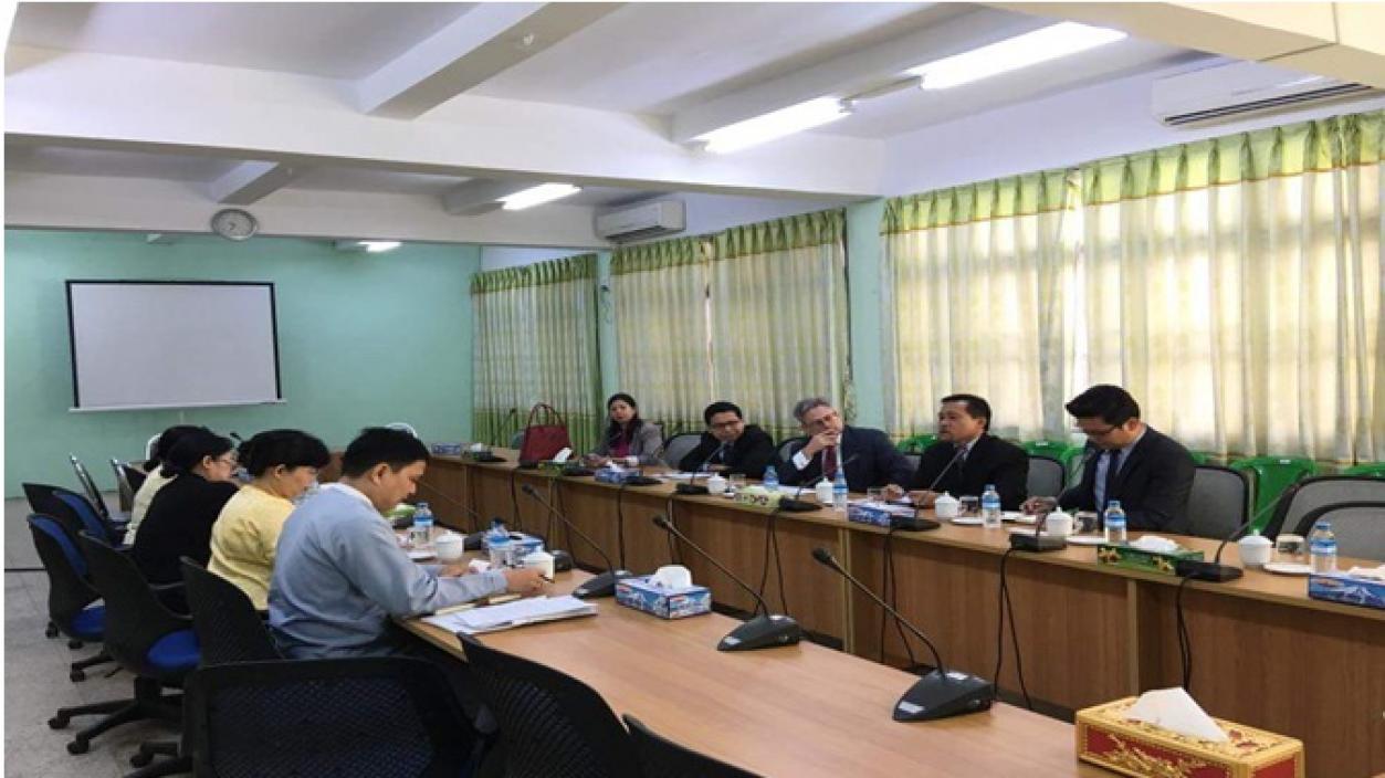 The delegation led by Mr. Rey Santella, Agricultural Attache’, and Ms. Swe Mon Aung, Agricultural Specialist United States Department of Agriculture (USDA), Mr. Bruce W.Blakeman, Vice President and Mr. Pitra Narendra, Manager Cargill Company Limited and Wai Maung Maung Tin (Raymund), Chief Representative ADM Myanmar Company Limited met with respective persons from Directorate of Investment and Company Administration in the morning of 29th November, 2016 and cordially discussed matters relating to the new investment law and investment opportunity in Agriculture Sector.