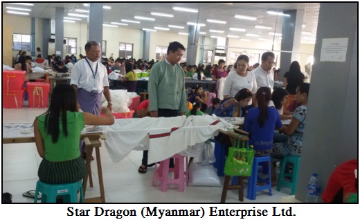 Officials from Directorate of Investment and Company Administration, Department of Labour, Department of Environmental Conservation and Directorate of Industrial Supervision and Inspection conducted field inspection on works carrying out under MIC permit by “Spring Moon Garment Manufacturing Co., Ltd.”, “Star Dragon (Myanmar) Enterprise Ltd.” and “KBL Fashion Ltd.” at Hlaing Thar Yar Industrial Park, Hlaing Thar Yar Township, Yangon Region on 22nd November 2016. During the inspection, the team coordinated necessities of the companies.
