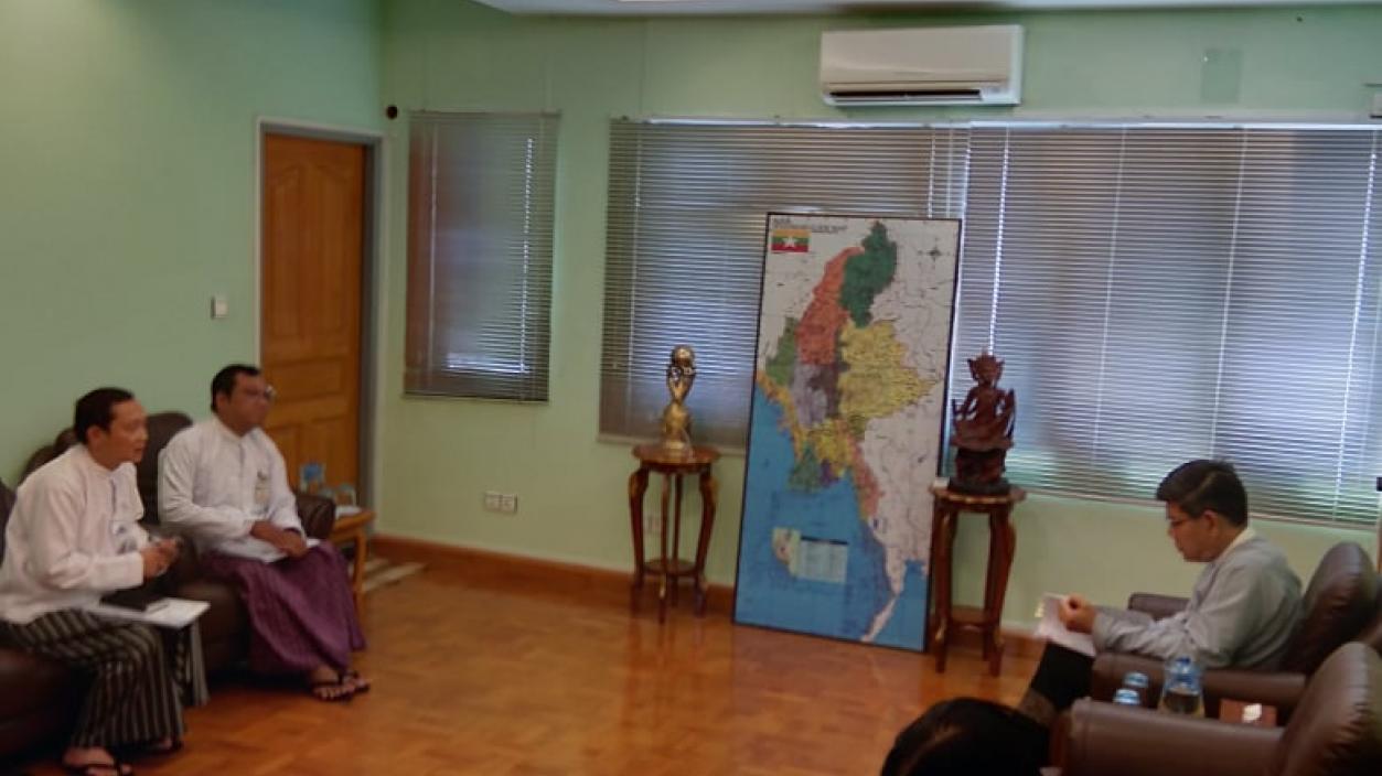 U Thant Sin Lwin, Director General of the Directorate of Investment and Company Administration received U Zaw Myo Kyaw, Managing Director of the United Hotels and Resorts Company Limited and his team on 19th March, 2020 in Yangon. During the meeting, they discussed matters relating to the investment.
