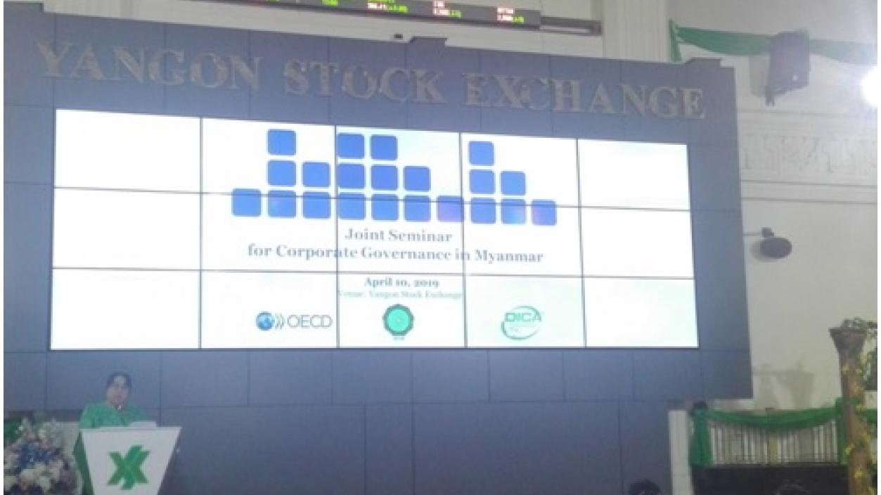 The Joint Seminar on Corporate Governance in Myanmar was held at Yangon Stock Exchange on 10th April 2019 with the collaboration of the Directorate of Investment and Company Administration (DICA), the Securities and Exchange Commission of Myanmar (SECM) and the Organization for Economic Co-operation and Development(OECD).