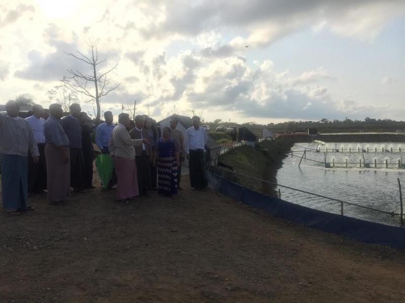 U Kyaw Win, Union Minister of Ministry of Planning and Finance and Chairman of Myanmar Investment Commission accompanied by U Htay Win, Minister of Ministry of Planning and Finance, U Aung Naing Oo, Director General of Directorate of Investment and Company Administration and other official visited to Inrrawaddy Fisheries Development Co., Ltd which is situated in Ngwe Saung, Ayeyarwaddy Region on 21 April 2018. The company is doing investment in breeding, manufacturing and selling of prawns with the approval of Myanmar Investment Commission. The Union Minister inspected the shrimp farming project sites and urged to implement as soon.