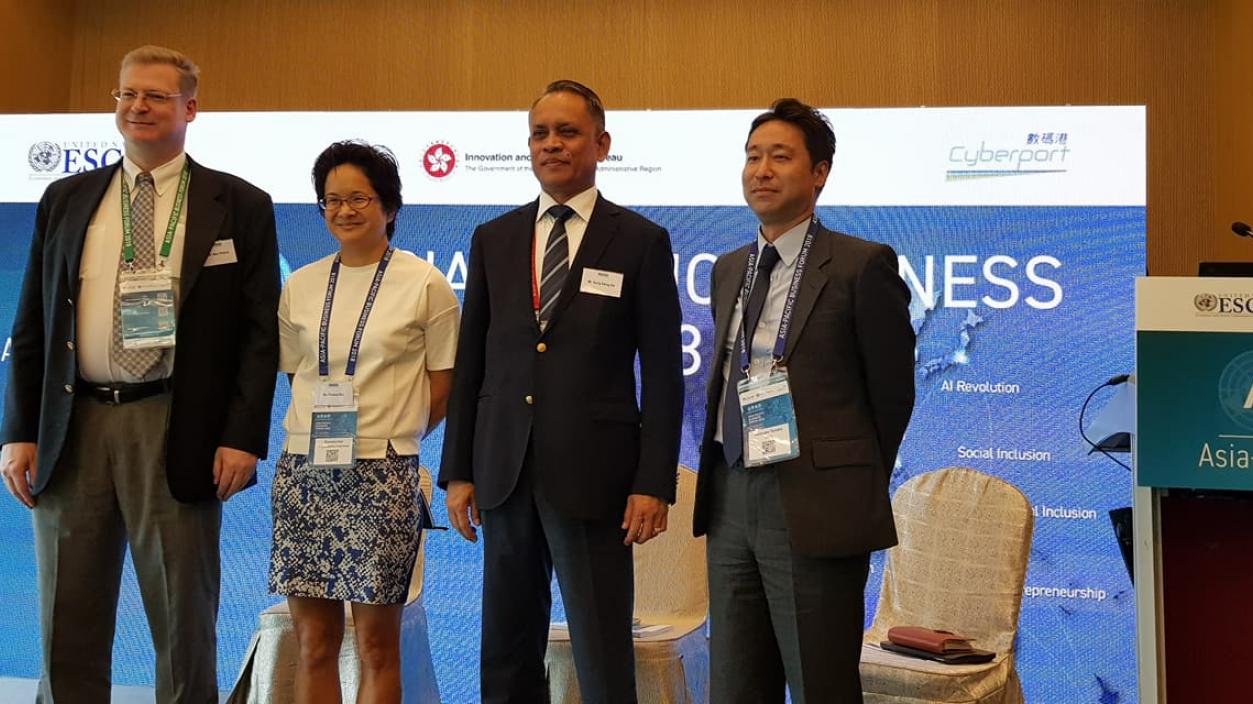 U Aung Naing Oo, Director General of the Directorate of Investment and Company Administration, Ministry of Planning and Finance, is attending the Asia-Pacific Business Forum-APBF 2018 which is jointly organized by the Economic and Social Commission for ASIA and the Pacific (ESCAP) and Cyberport, with the support from the Innovation and Technology Bureau of the Hong Kong Special Administration Region from 10 to 11 April 2018 in Hong Kong.On the second day of the event, the Director General participated as a panelist in information section for “Economic Outlook and Key Policy Challenges in Emerging Asia” with “Enhancing Growth through Digitization”.