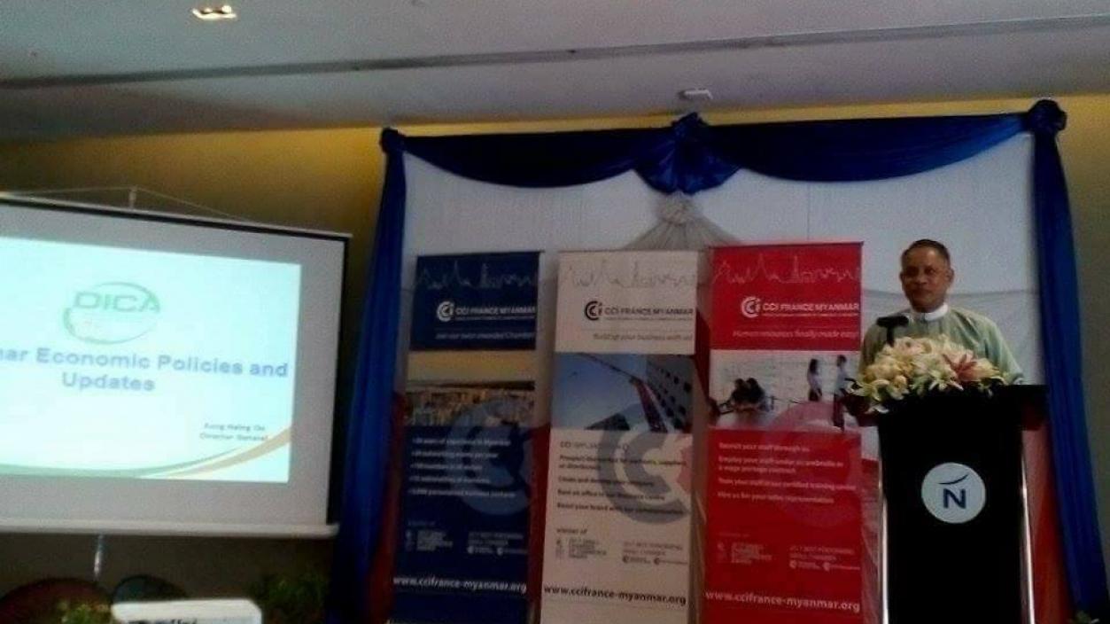 Director General U Aung Naing Oo attended “A Conference in Industry Sector”- an event organized by the Embassy of France and France-Myanmar Chamber of Commerce, on 30 March 2018 at Novotel Hotel Yangon. The Director General gave a brief presentation on the Myanmar Economy and Legal framework for companies.