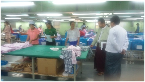A ground inspection team organized by Myanmar Investment Commission, comprised of officials from Directorate of Investment and Company Administration, Department of Industrial Supervision and Inspection, and the Department of Environmental Conservation Directorate of Labour made a field visit to Yangon Panatex Apparel Co., Ltd. of Plot No.4 , Thardukan Industrial Zone, Shwe Pyi Thar Township, Yangon Region .The team discussed the project implementations; Investment, Production, Employment and the Environmental Management Plan conducted by the Company. The team also discussed the responsibilities and needs of the company, and the coordination of those with the respective departments.