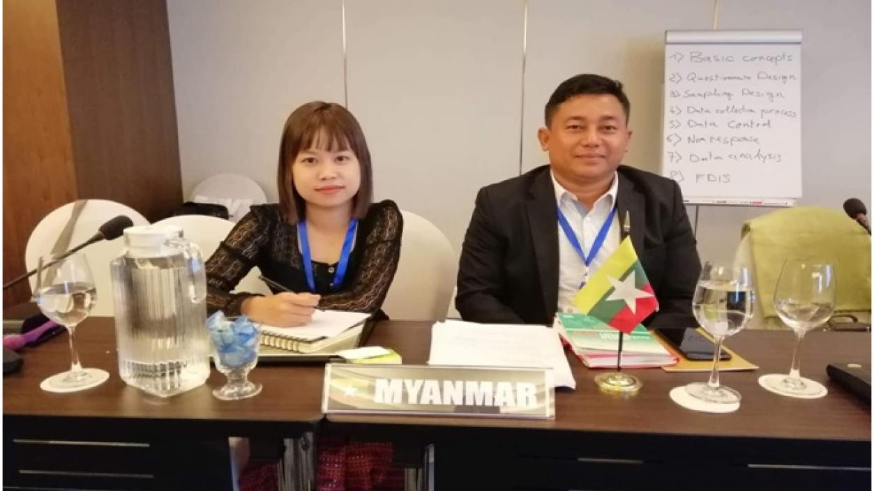 U Kyaw Win Tun, Director, and Daw Nyain Moh Moh Zaw, Staff Officer, Directorate of Investment and Company Administration, Ministry of Planning and Finance, attend the “Workshop on Business Survey Methodology Targeted to FDIs Compiler” which is held in Hanoi, Vietnam from 15th to 19th October 2018.