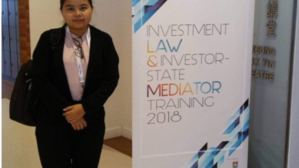 Daw Htar Ei San, Assistant Director, Directorate of Investment and Company Administration, Ministry of Planning and Finance attends the training on Investment Law and Investor-State Mediator which is held in Hong Kong from 15th October to 21st October 2018.