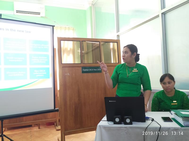 The Myanmar Companies Law (2017); The Company Registration Procedures (MyCO) were discussed and responses were given to participants.