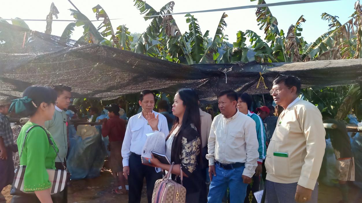 Kachin State Investment Monitoring Team, composed of officials from the Directorate of Investment and Company Administration, the Department of Labour, the Department of Industrial Supervision and Inspection, the Department of Environmental Conservation and the Department of Agriculture conducted a field visit to cultivation, production and exportation of international quality Brazil Banana under Kachin State Investment Committee (KCSIC) permit by Kachin Tian Hu Co., Ltd. At Waingmaw Township in Kachin State on 25th November 2019.