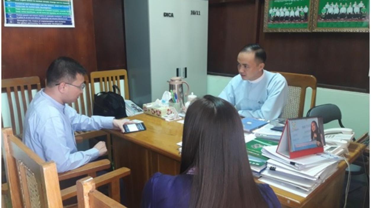 U Aung Zayar Lwin, the representative from the Investment and Trade Promotion Committee of the Union of Myanmar Federation of Chambers of Commerce and Industry (UMFCCI) and his team met with Dr. Wunna Aung, Director of Directorate of Investment and Company Administration (DICA) on 26th November, 2018. During the meeting, they discussed matters relating to the future cooperation on investment promotion.