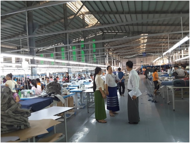 An inspection team consists of the officials from Directorate of Investment and Company Administration, Directorate of Industrial Supervision and Inspection, Department of Environmental Conservation and Department of Labor conducted a field inspection on the manufacturing of garment and safety clothing on CMP basis under the Yangon Region Investment Committee Endorsement by Global Ace Uniform Company Limited at Plot No. 12/2, Myay Taing Block No.109, Industrial Zone, East Dagon Township, Yangon Region, on 18th December, 2018.  The team coordinated for the requirements of the project.