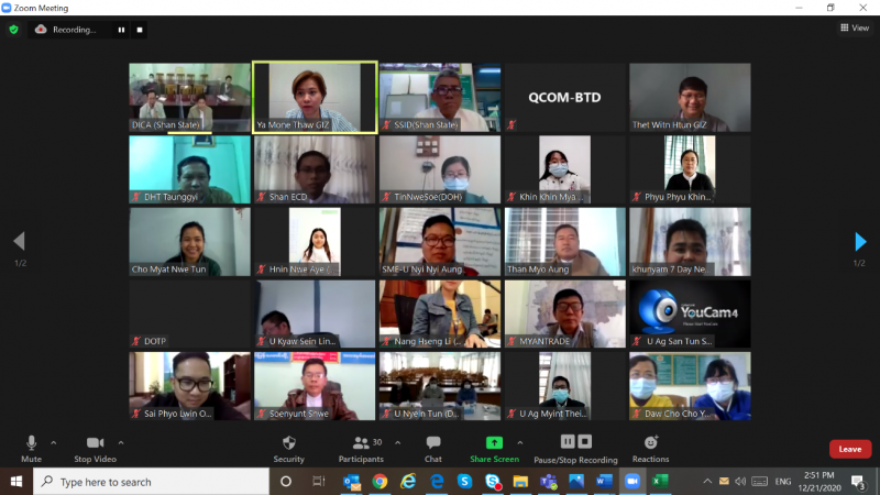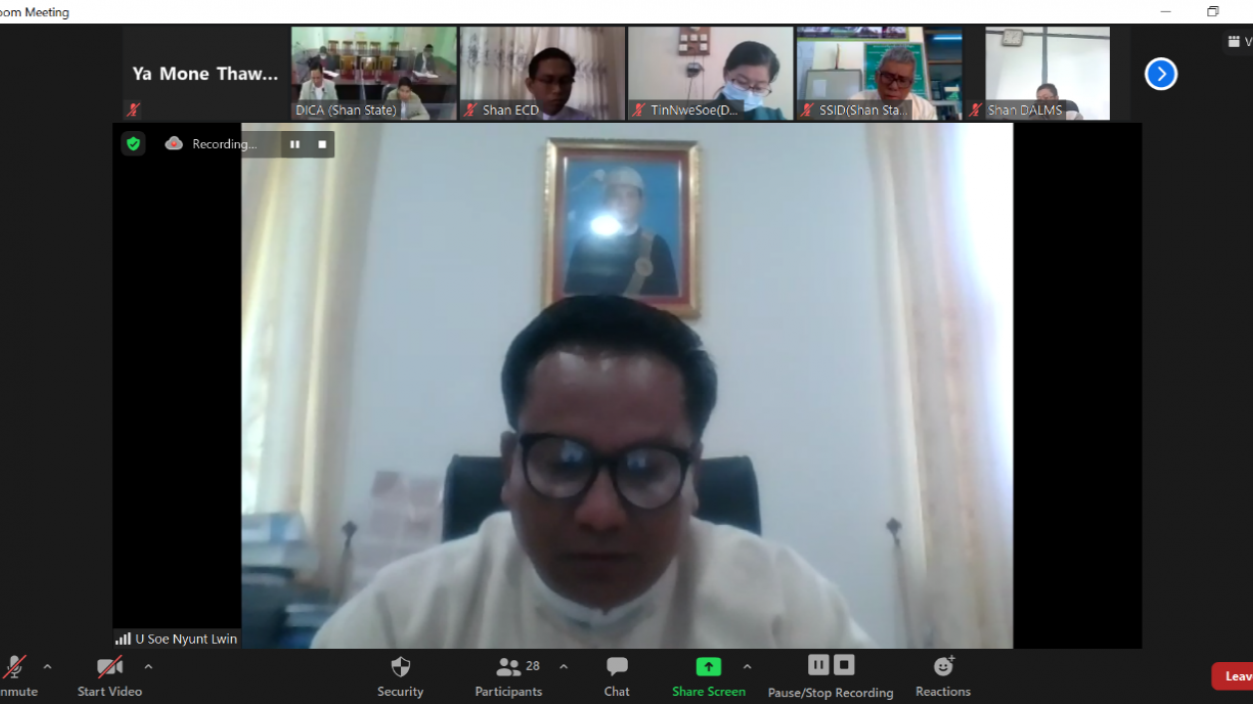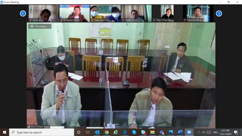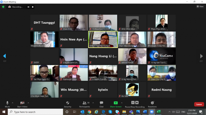 An online video conference was held on December 21st, 2020 by the Shan State Investment Committee (SSIC) to introduce the operational plan of the Shan State Investment Promotion Plan (SSIPP) for the fiscal year 2020-2021. At the event, U Soe Nyunt Lwin, Minister of Planning and Economics, Shan State delivered the opening speech, and U Lay Naing, Director of DICA and the secretary of Shan State Investment Committee presented an overview of the SSIPP’s annual operation plan. Then the representatives from the relevant working groups of the SSIPP answered questions from the media and other participants.