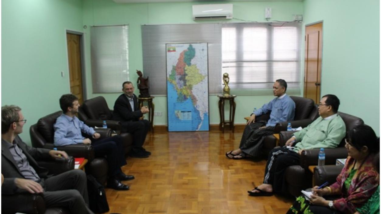 U Aung Naing Oo, Director General of the Directorate of Investment and Company Administration (DICA) met with Mr. Tobias Stolz, Business Cluster Coordinator from GIZ and his team on 12th December 2018 in Yangon. At the meeting, they exchanged views on investment promotion in Myanmar and discussed matters relating to future cooperation.