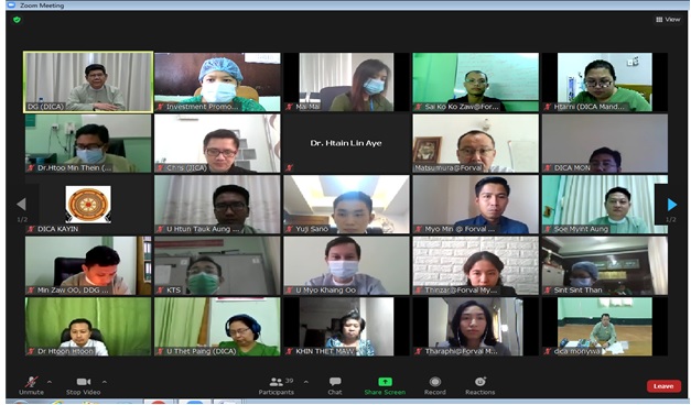 A virtual workshop of “KAIZEN for Institutional Capacity Development” organized by the Japan International Cooperation Agency (JICA) was held from 13:00 to 16:00 on 11th December 2020. Director General U Thant Sin Lwin highlighted in his speech to effort to apply the principles gained from the workshop to the work they are going through. This workshop was attended by 28 participants from the Directorate of Investment and Company Administration (DICA). The workshop will be held on every Friday for six weeks.