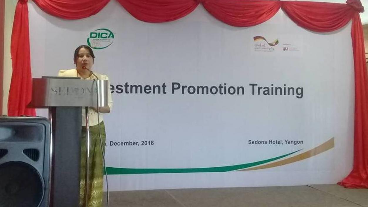 With the aim to develop a self-understanding and to identify the opportunities for investment promotion activities, the Investment Promotion Training was held in Sedona Hotel on 4th December, 2018 in Yangon. The training is jointly organized by Directorate of Investment and Company Administration (DICA) and Deutsche Gesellschaftfür Internationale Zusammenarbeit GmbH (GIZ).