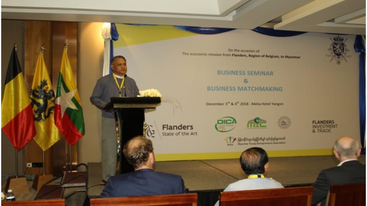 The business seminar was aimed to organize for Belgium investors to understand the business climate in Myanmar. Belgium investors are interested to invest in various sectors such as infrastructure, healthcare, agriculture & food innovation technologies, logistics, construction and energy.