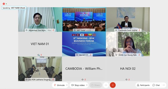 “The 8th Mekong-Republic of Korea Business Forum” jointly organized by Viet Nam and the Republic of Korea held in Hanoi, Vietnam on 4th December 2020. U Soe Myint Aung, Deputy Director General of the Directorate of Investment and Company Administration (DICA) attended and participated as a panelist in a panel discussion on “Setting the Scene: Emerging Opportunities and Challenges for Business in the Changing Landscape of the Global Economy” via Video Conferencing.