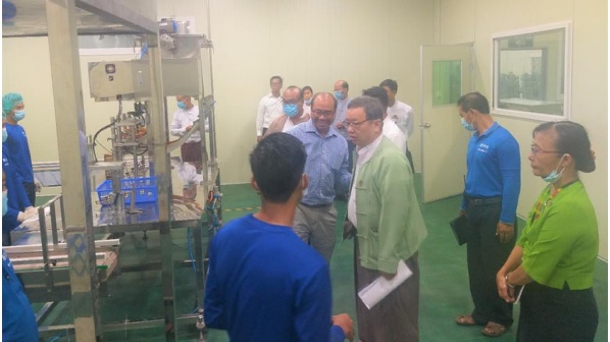 Investment Monitoring Inspection Team led by U Aye Lwin, member of the Myanmar Investment Commission (MIC) and the Officials from relevant Departments conducted a field inspection on carrying out Production, Sales and Distribution of Roasted Sesame Powder and Edible Oil under MRIC Endorsement by “Chung Bo Myanmar Food and Global Co., Ltd.” at Pyawbwe Township, Mandalay Region on 19th August, 2020. During the inspection, the team coordinated for the requirement of the company.