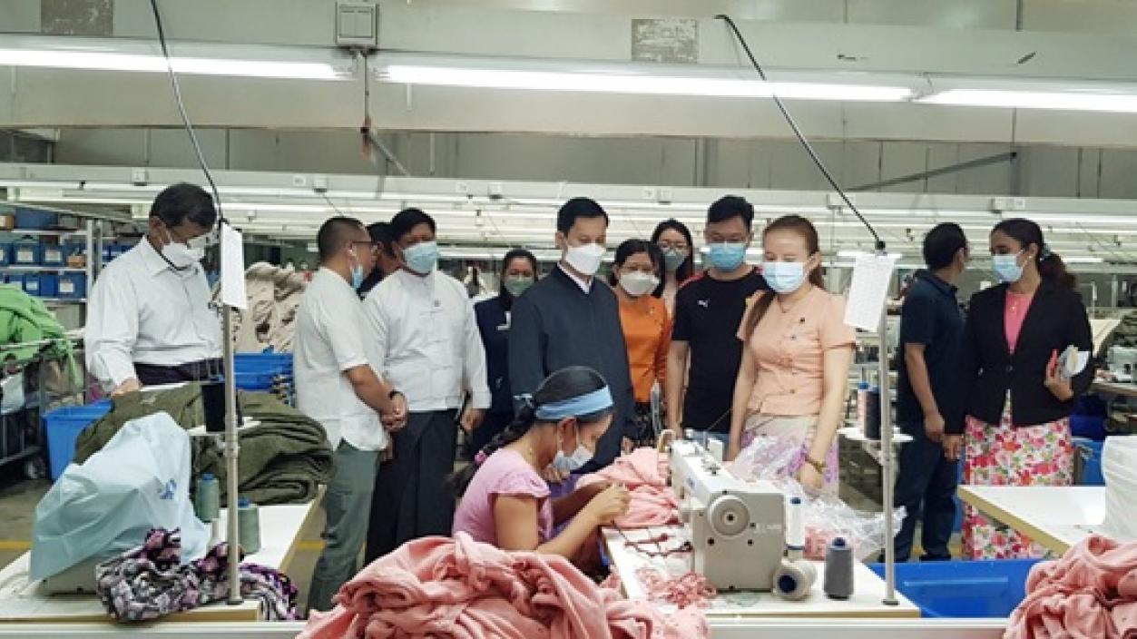 The Yangon Region Investment Monitoring Team conducted a field inspection on the manufacturing of knitted wear, eyeglass frames and boxes, printing and designing on fabrics and clothes on a CMP basis with the approval of the Yangon Region Investment Committee at Hlaing Thar Yar Township and Shwe Pyi Thar Township in Yangon Region on 6 January 2022. Then, the team coordinated the needs of the factories.