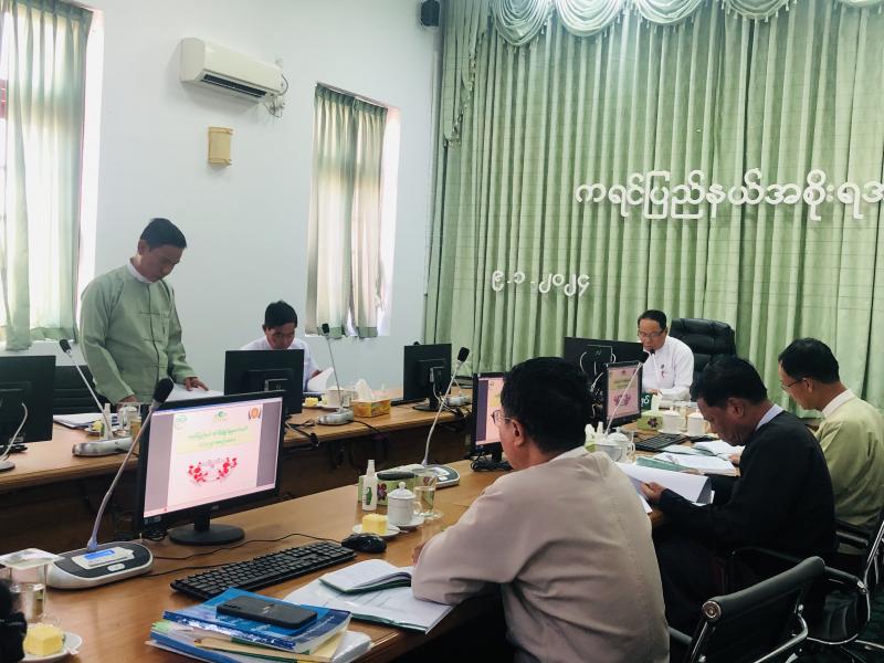 The Kayin State Investment Committee (KYNIC) (1/2024) meeting was held at Kayin State Government Office on 9th January, 2024. The meeting was chaired by U Saw Myint Oo, Chairman of KYNIC, Chief Minister for Kayin State, U Saw Khin Maung Myint, Minister of Economic Affair and U Ye Lwin, Kayin State Attorney General, 7 members of KYNIC attended the meeting.