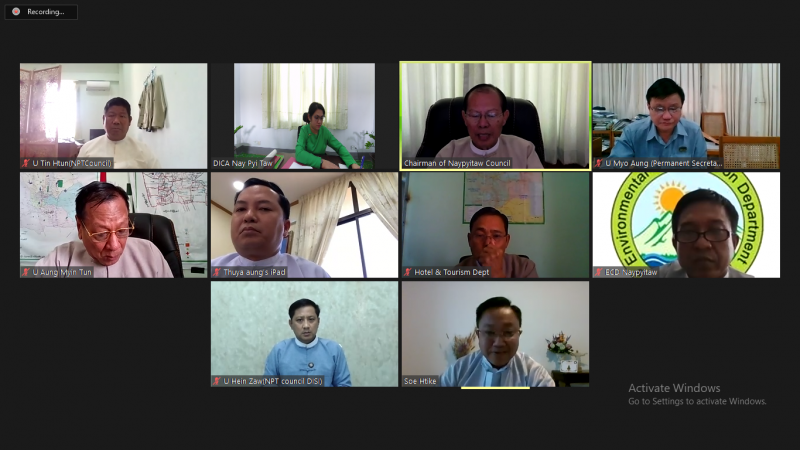 Nay Pyi Taw Council Investment Committee (NCIC) meeting (1/2021) was convened at the meeting hall of the Nay Pyi Taw Council Office in the morning of 29th January, 2021 at Nay Pyi Taw via video conferencing system. Dr. Myo Aung, Chairman of the NCIC, all members and special guests attended the meeting.