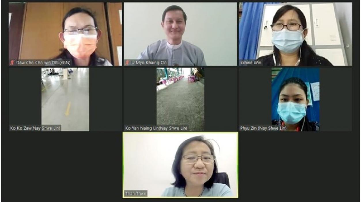 The Yangon Region Investment Monitoring Team led by H.E Daw Moe Moe Su Kyi, Minister for Immigration and Human Resource, Yangon Region Government and officials from relevant departments met the responsible persons from MTM(Yangon) Company Limited, Oriental Peak Industrial Company Limited, Best Win Myanmar Company Limited, Mountain Top Global Limited, PWR Fashion Company Limited,Nay Shwe Lin Company Limited, and Hong Ri (Myanmar) Company Limited using video conferencing system on 11th, 12th, 14th January, 2021. The team checked the factories’ implementations according to the guidelines and procedures for factories of prevention of the Corona Virus Disease 2019 (COVID-19) of Ministry of Health and Sports. The team also inspected office, Production Lines and employees’ condition and necessary services to factory.