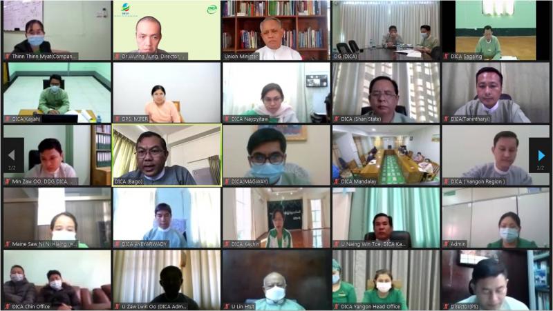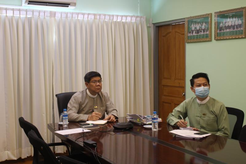 Union Minister for Investment and Foreign Economic Relations, U Aung Naing Oo met the Director General, Deputy Director Generals, Directors, and Head of the State and Region of the Directorate of Investment and Company Administration with a Video conferencing system this afternoon.