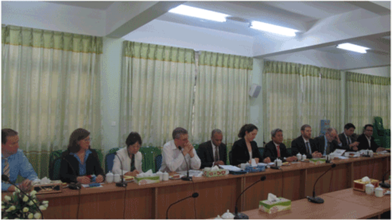 The delegation lead by Mr. Iman Kennerly, Director, Small and Medium Enterprise Finance, American Overseas Private Investment Corporation visited at the office of the Directorate of Investment and Company Administration (Office No. 1, Thitsar Street, Yankin Township) in Yangon at (13:00) pm on 24th February, 2015 and cordially discussed matters relating to the investment in Myanmar.