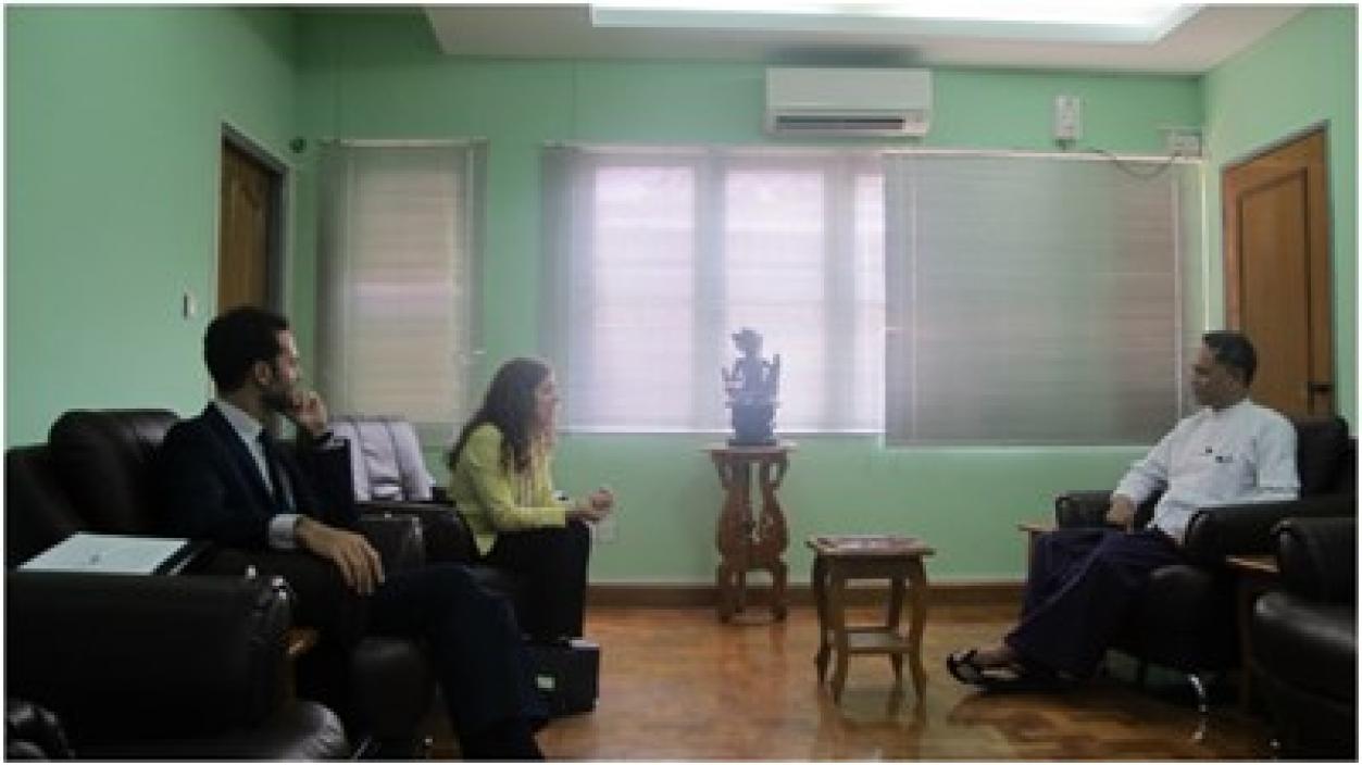 Two delegates, Mr.Nicolas YIIera, Project Director and Ms. Maria Torres, Project Coordinator of Prisma Group visited at the head office of the Directorate of Investment and Company Administration (No.1, Thitsar Street, Yankin Township) in Yangon at (3:00) pm on 6th April, 2015 and affectionately and warmly discussed matters associated with the investment in Myanmar.