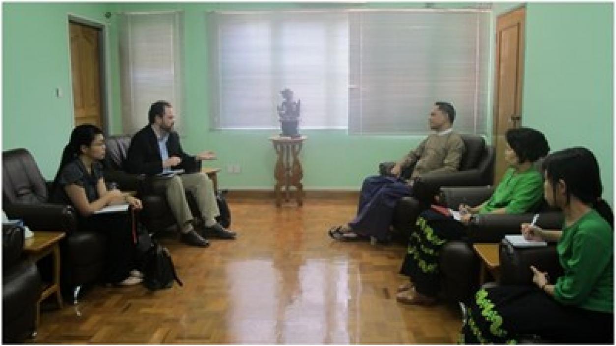 Mr. Dennis Hall, Senior Manager, Deloitte Consulting LLP visited at Directorate of Investment and Company Administration (DICA), No.(1), Thitsar Road , Yankin Township, Yangon at (1:30) pm on 8th April, 2015. At the meeting, they cordially discussed the ways to improve the transparency and efficiency of legislative and regulatory processes in Myanmar.